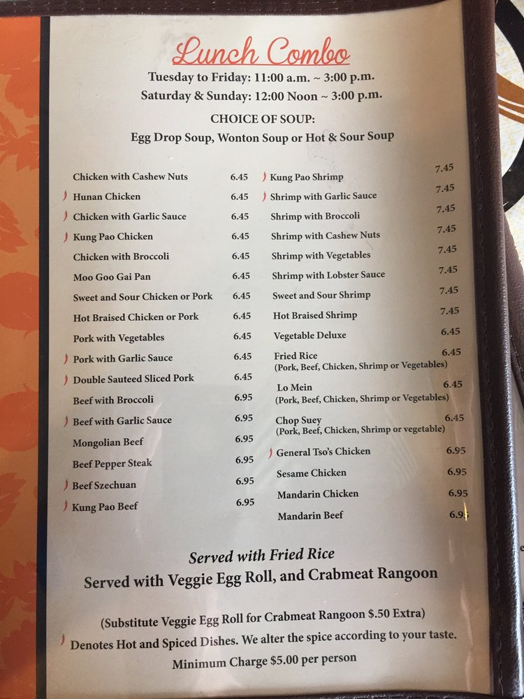 “ Lately this has been our go to place, lunch or dinner, dine-in or takeout, food is always delicious and plentiful. My go to dish is the General Tso's Chicken combo. The crab rangoons are always fresh and creamy. Since changing ownership the restaurant is more accessible for dine in, plus they enlarged the dinning facility. Place is always clean and staff is very friendly and helpful. Usually in and out for lunch in under an hour. Recommended for your Chinese cuisine at a reasonable price. ”